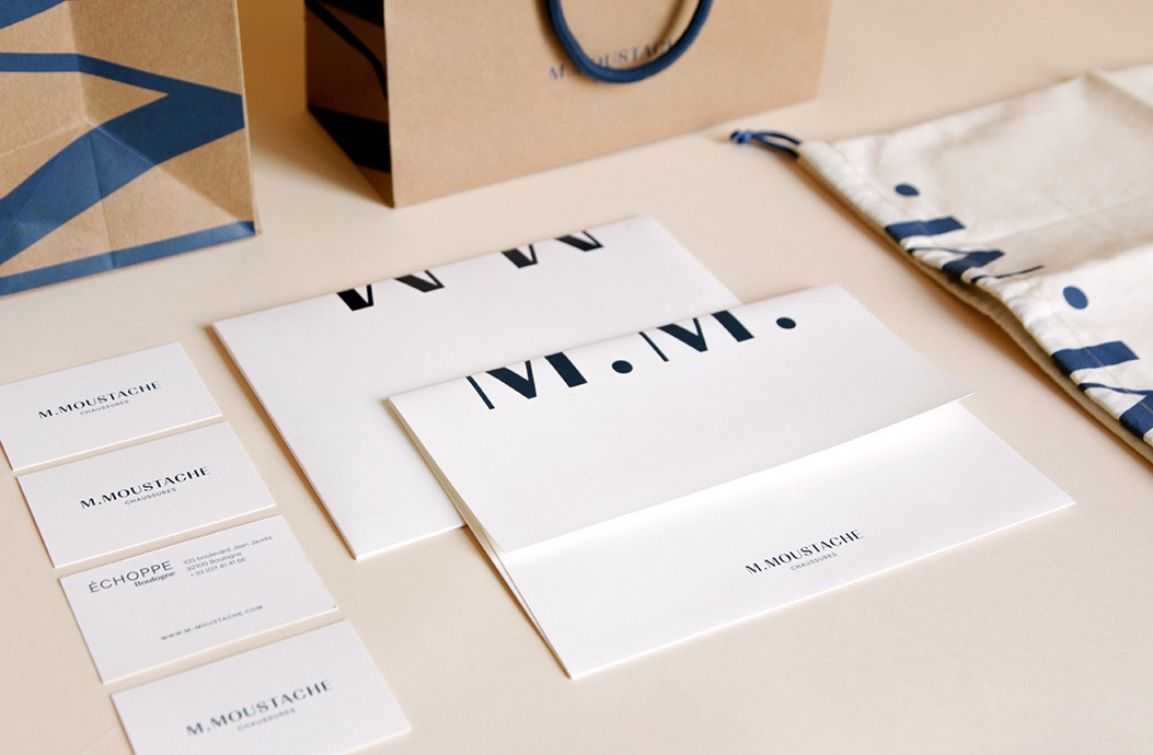 Refonte et déploiement de l’identité visuelle de M.Moustache, marque française de chaussures.